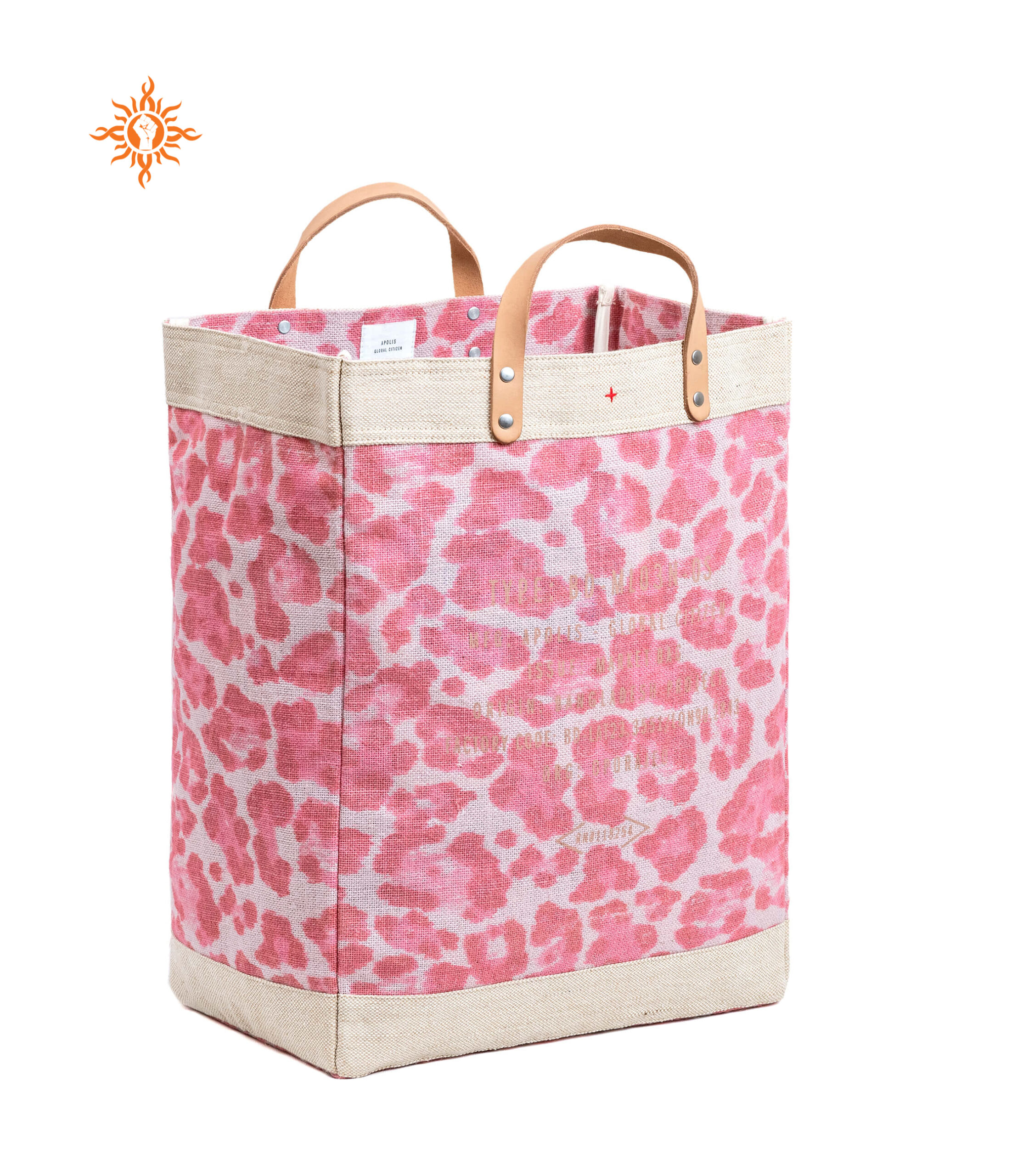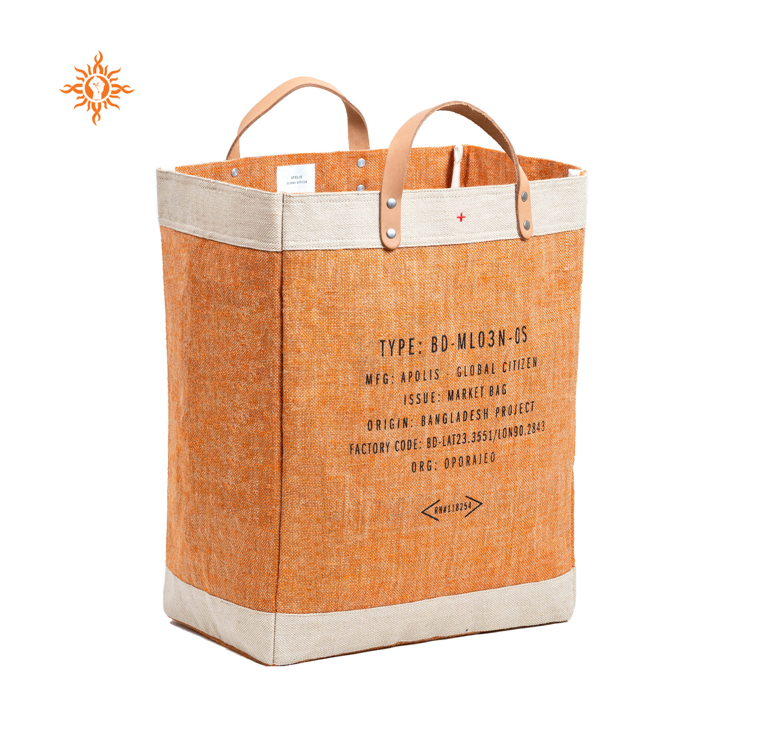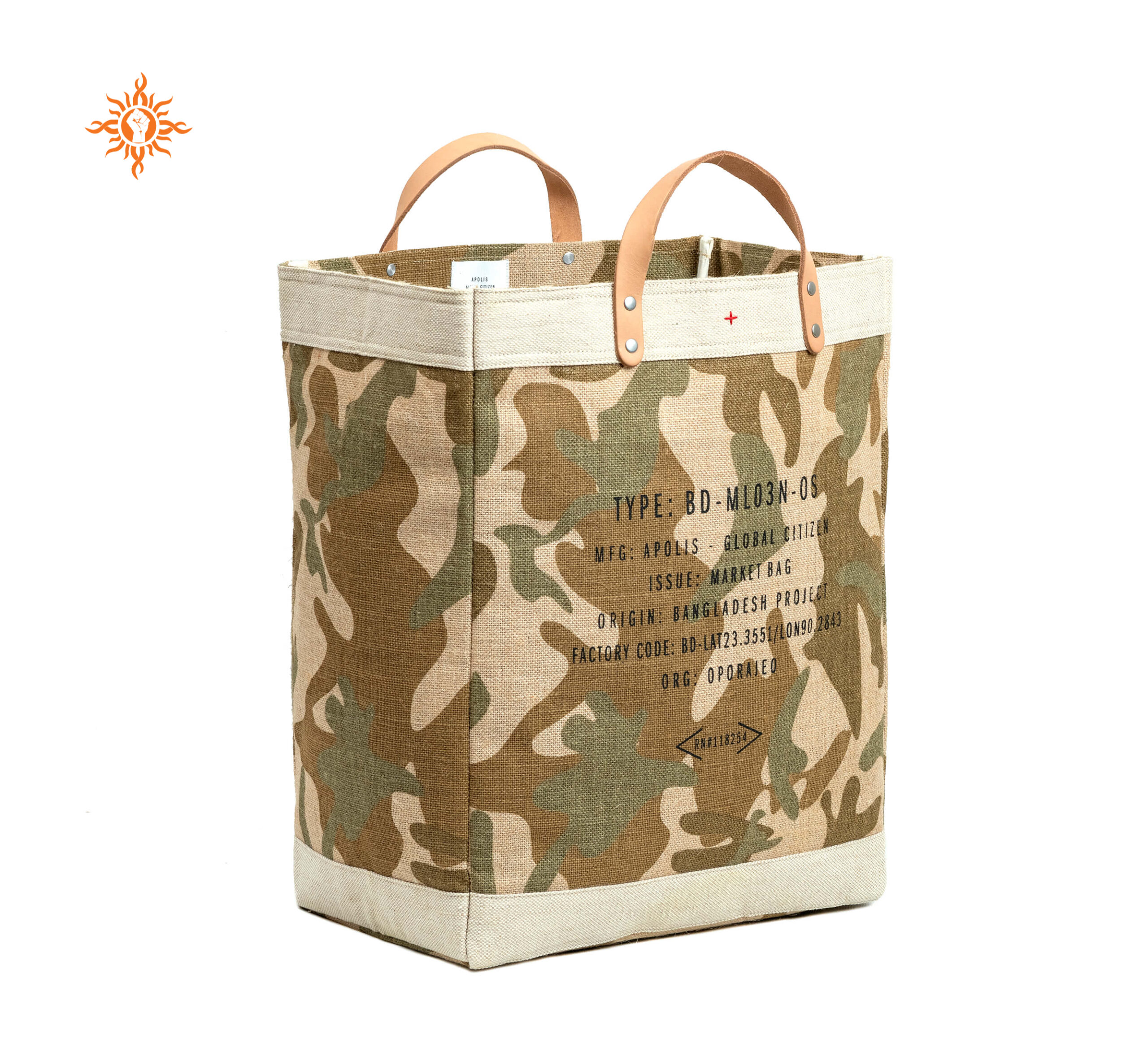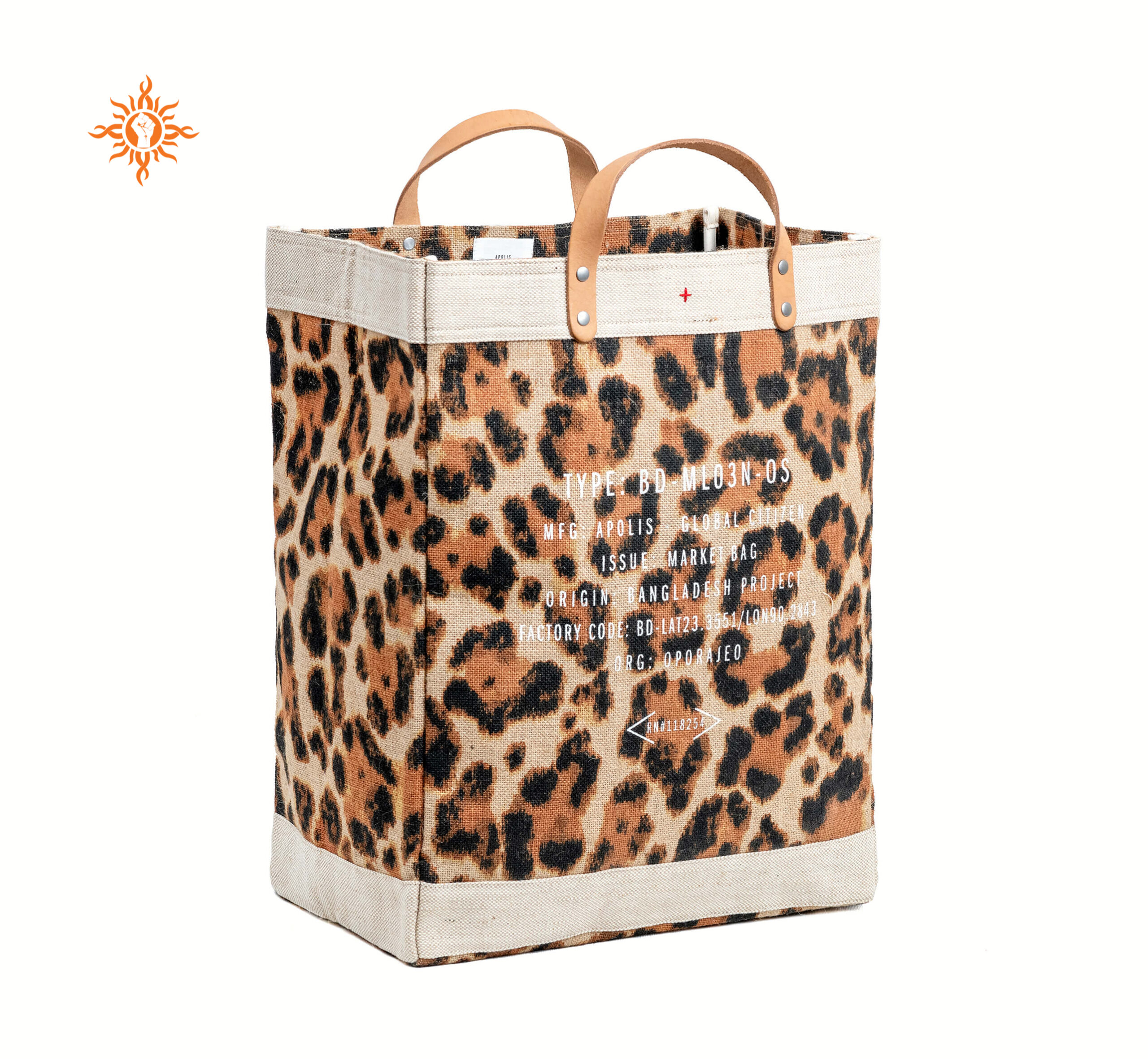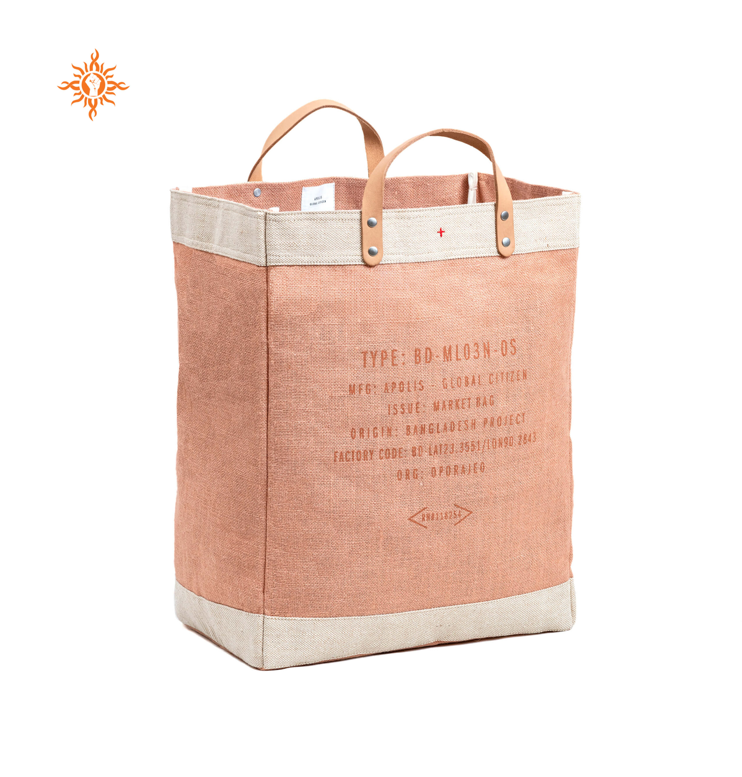 Size: 38x33x14cm, handle-75x2cm Material: 18x18 yarn dyed laminated jute and vegetable tanned leather OPOAM029